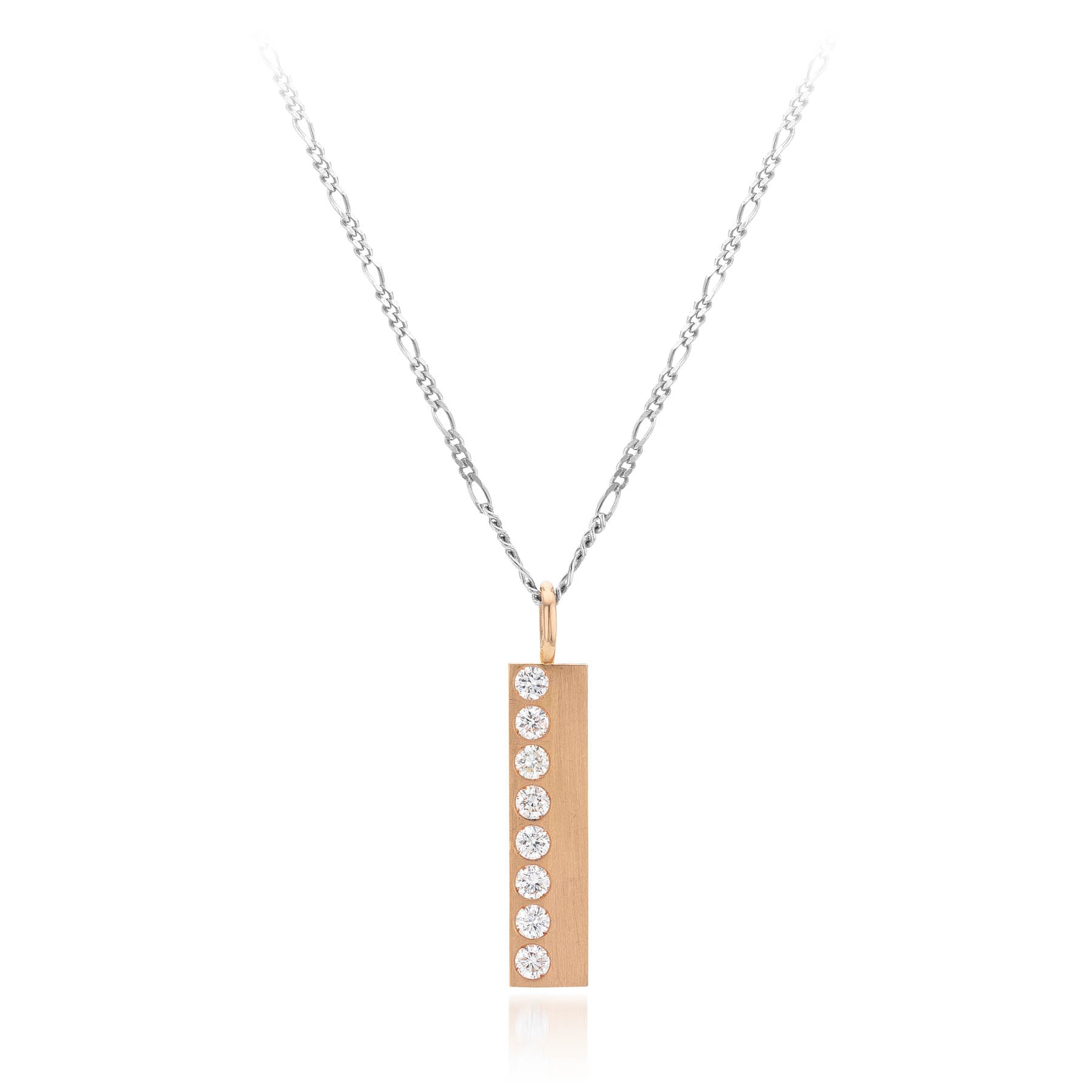 Beautiful brushed rose gold set with 0.24cts of round brilliant cut diamonds. The AGE hanger is a timeless addition to your neck stack. It's elongated shape adds an understated elegance to your everyday wardrobe. Includes a yellow gold curb chain in the length of your choice.