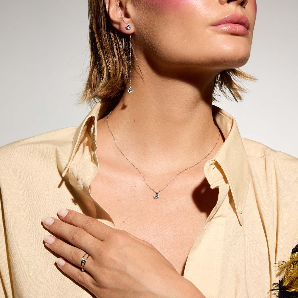 We are dedicated to ethical and sustainable production and use only 18k recycled solid gold and lab-grown diamonds of the highest color and clarity. The colourless diamonds we use are of EF color and VS clarity.