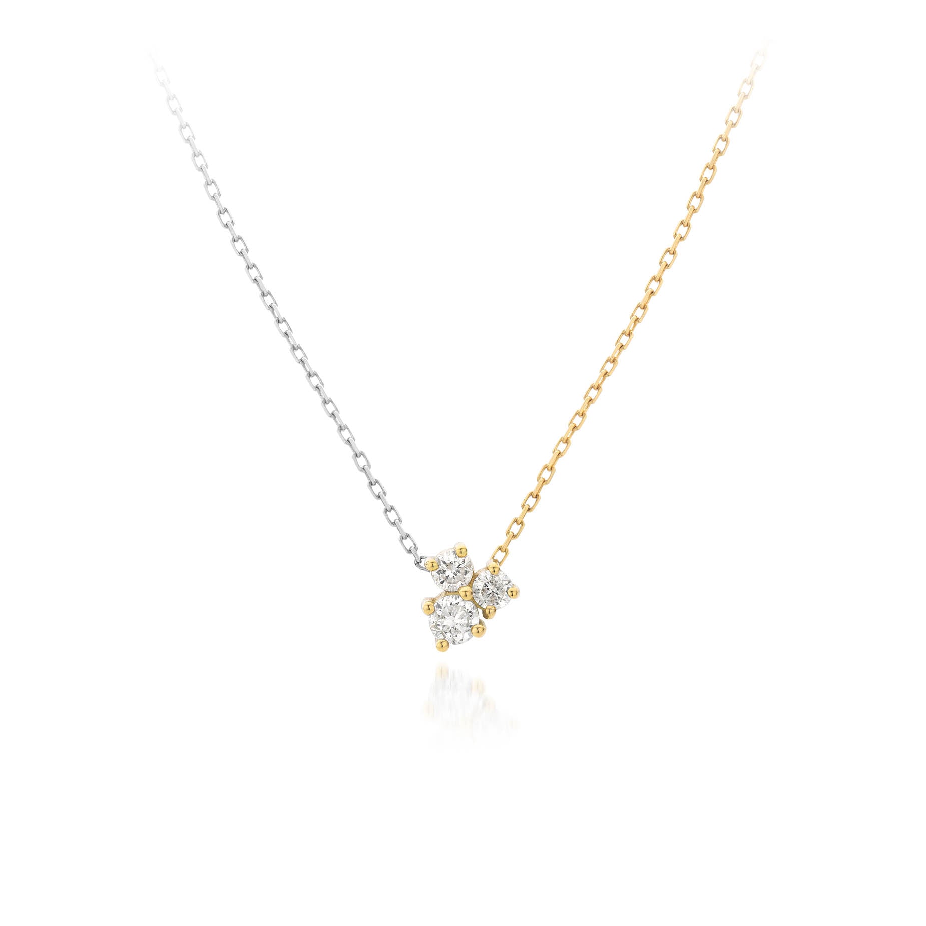 With its whisper thin bicolor chain, the Dyad Necklace will float on your neck like a second skin. The 45cm length is perfect for layering or wearing on its own. Five sparkling diamonds with a total weight of 0.22cts set as a tiny sculpture for your skin.