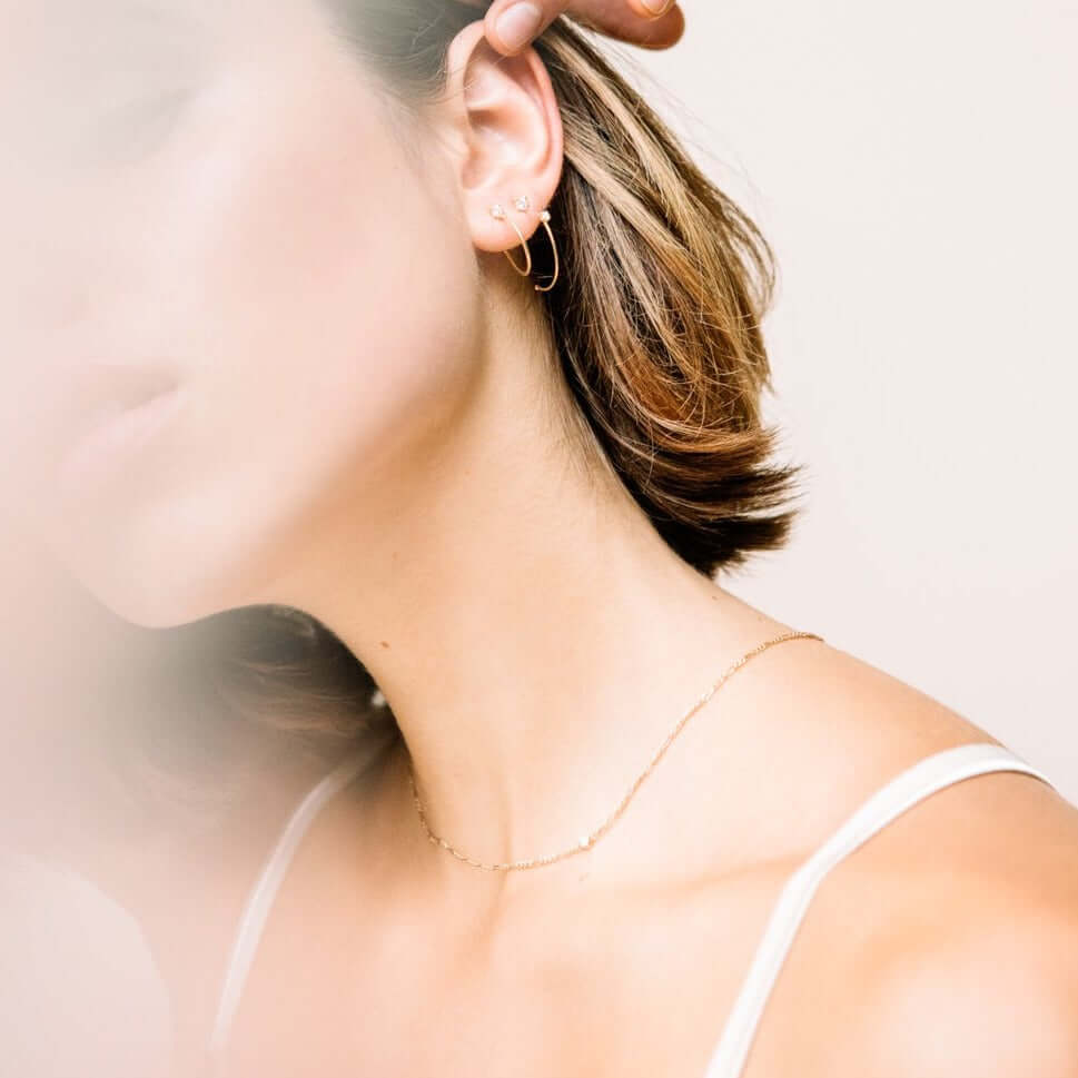 We are dedicated to ethical and sustainable production and use only 18k recycled solid gold and lab-grown diamonds of the highest color and clarity. The colourless diamonds we use are of EF color and VS clarity.