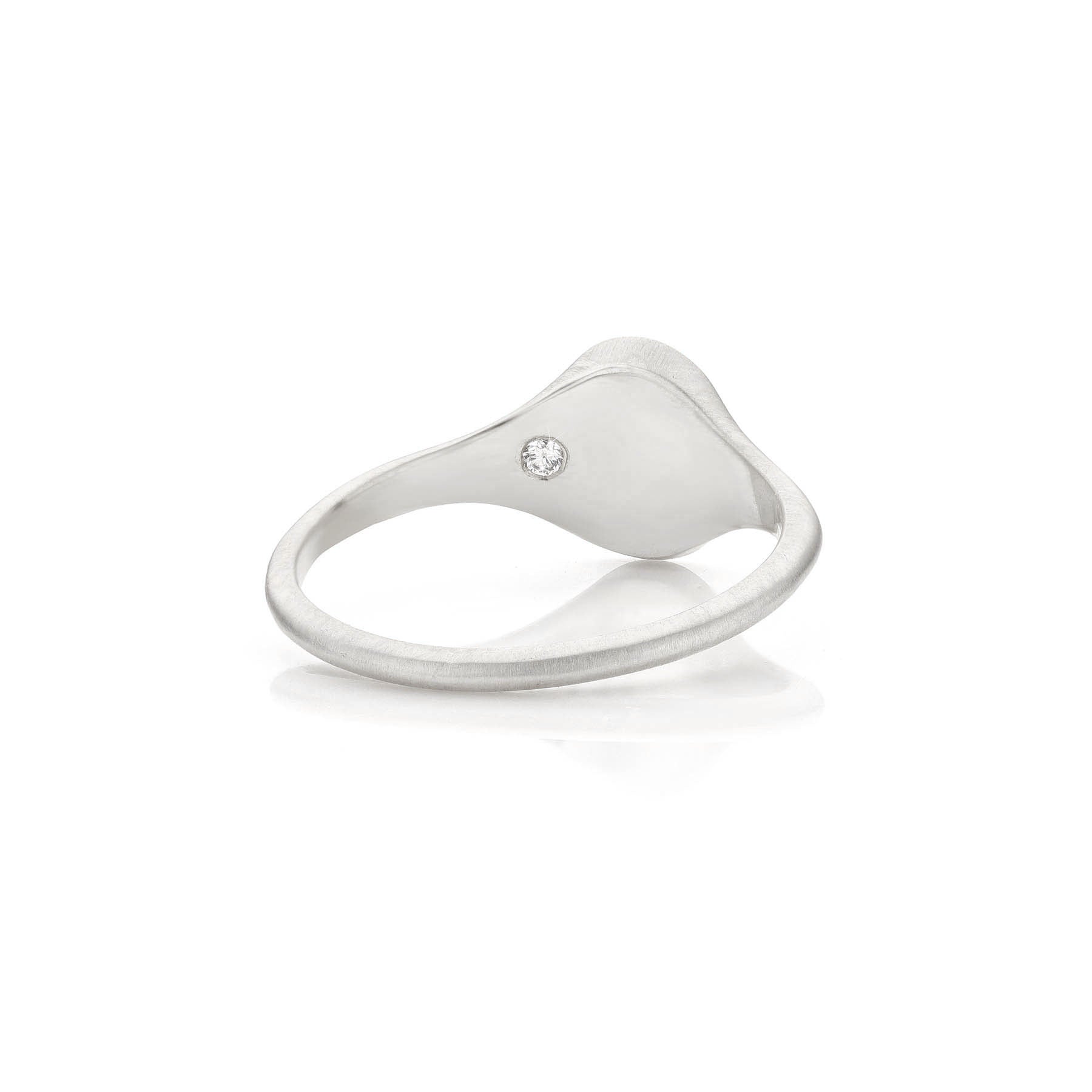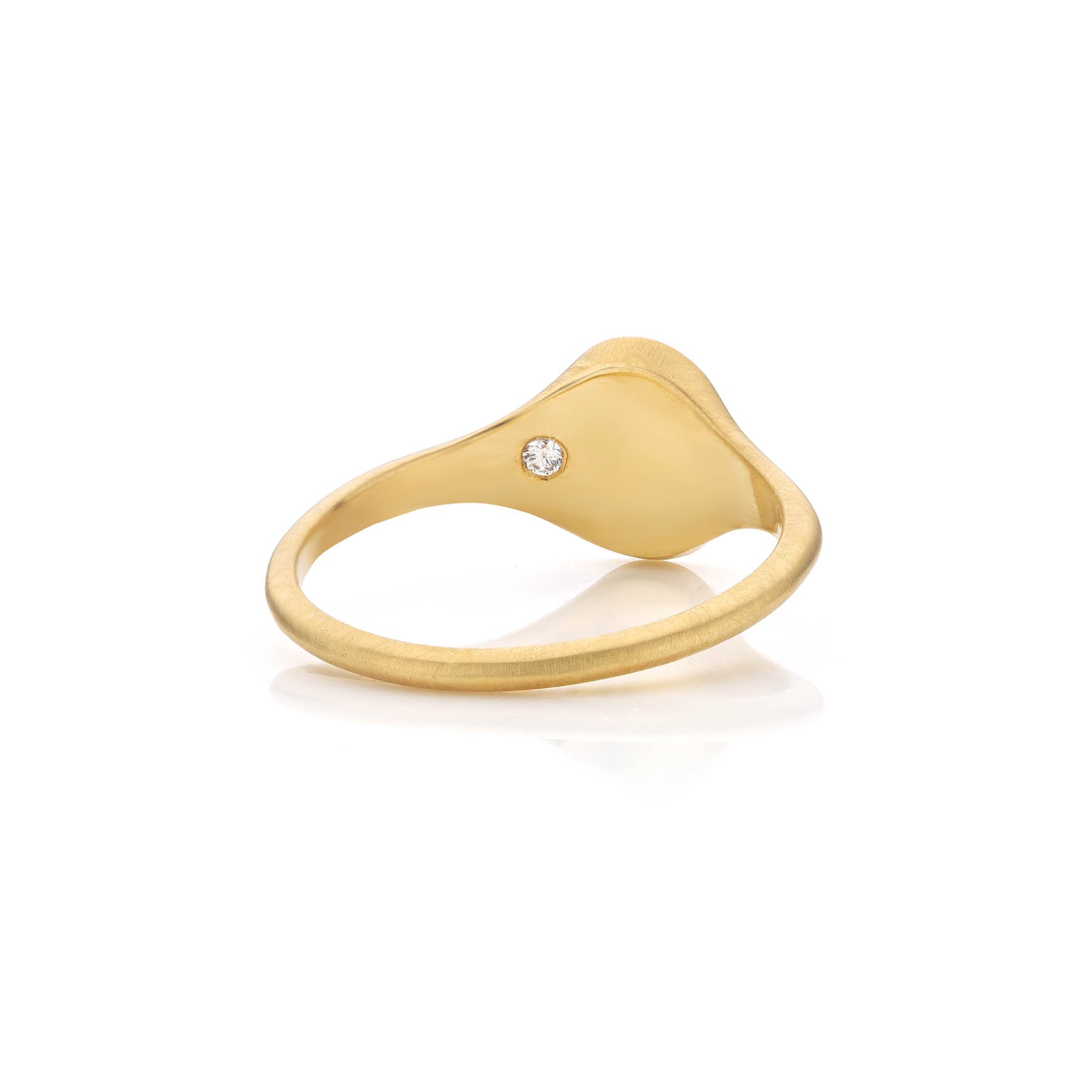 Signet rings have existed for centuries, meet the nue interpretation; clean, minimal and perfect for all your golden moments. Crafted by our expert artisans this ring has a rich brushed finish on the outside and a glossy polished inside with a subtle secret. Featuring a hidden diamond meant only for the wearer.