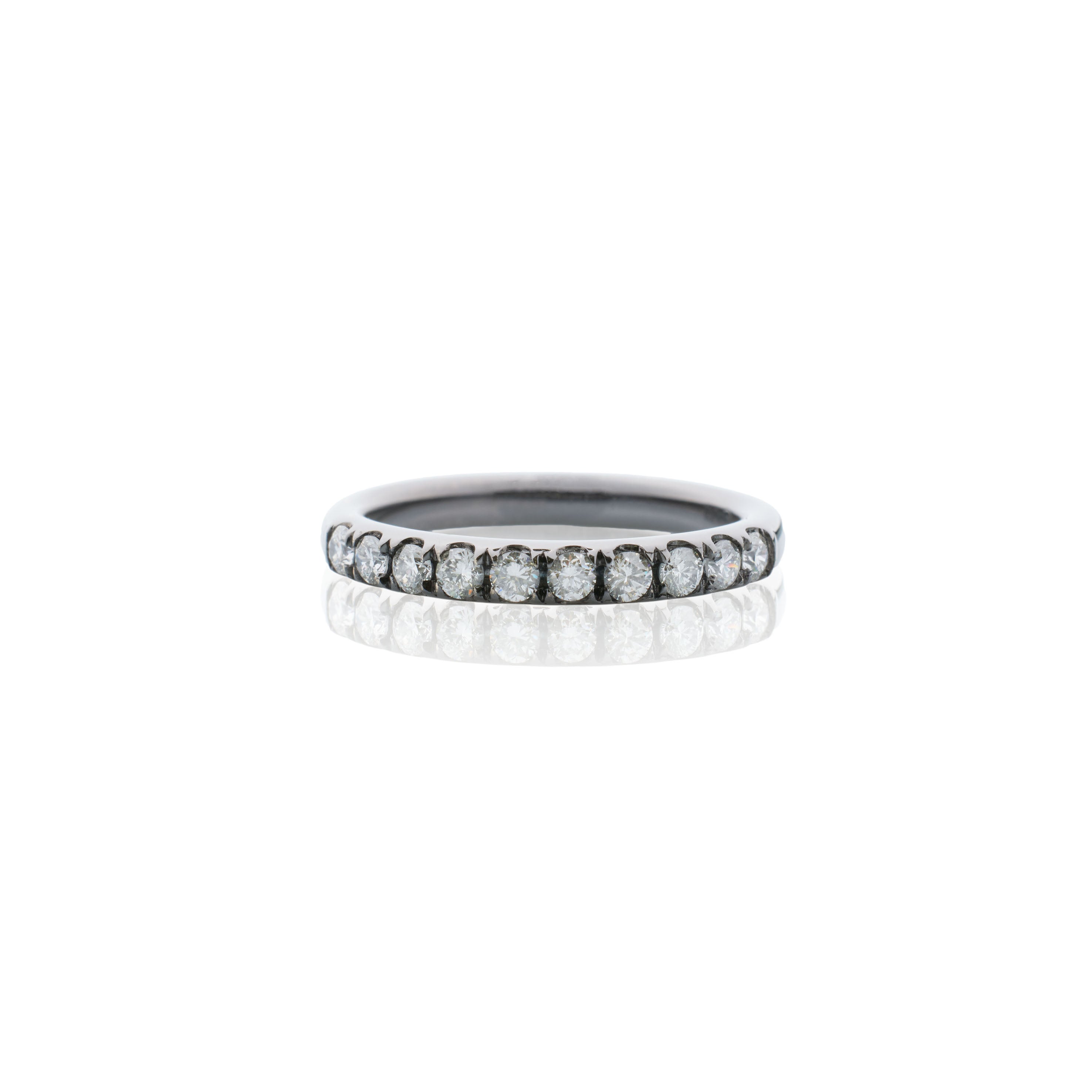A half eternity ring with extra edge. Brilliant cut round diamonds set in 18k gold with a black rhodium finish. Stack them in different widths. Especially created for Season 4 of Emily in Paris.