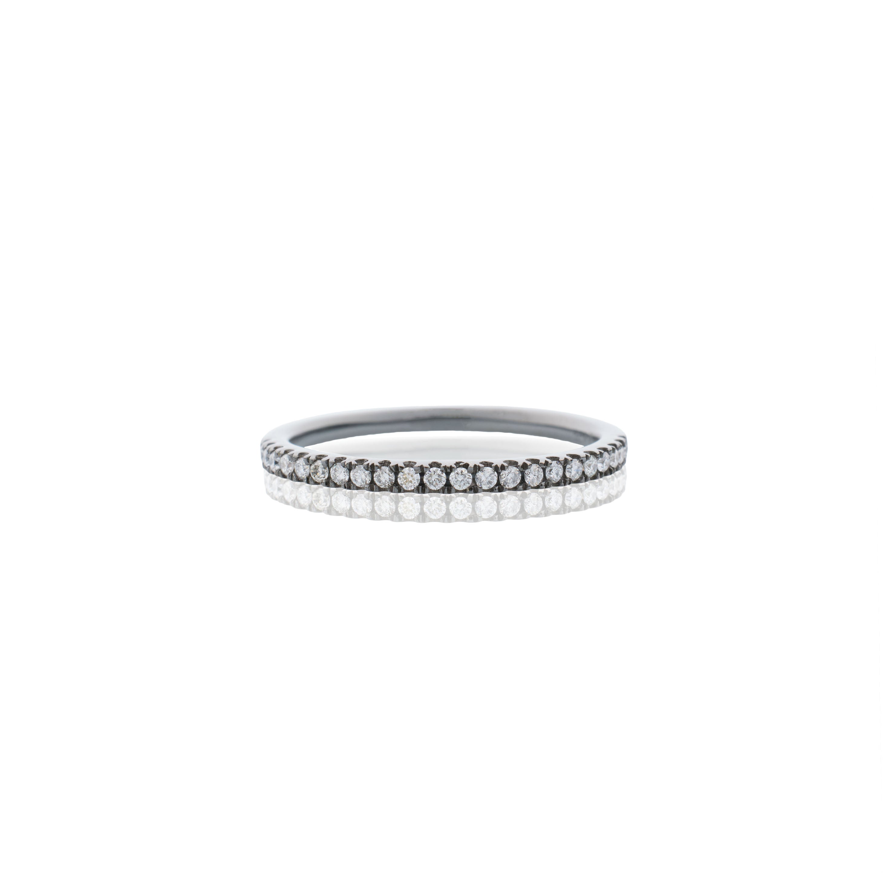 A half eternity ring with extra edge. Brilliant cut round diamonds set in 18k gold with a black rhodium finish. Stack them with Especially created for Season 4 of Emily in Paris.