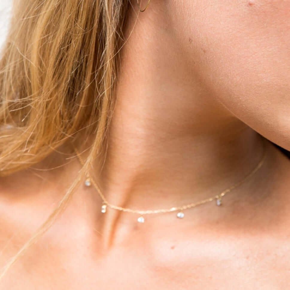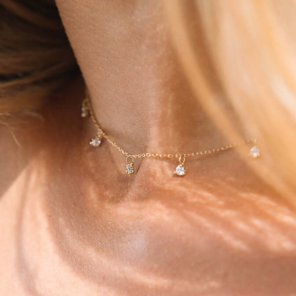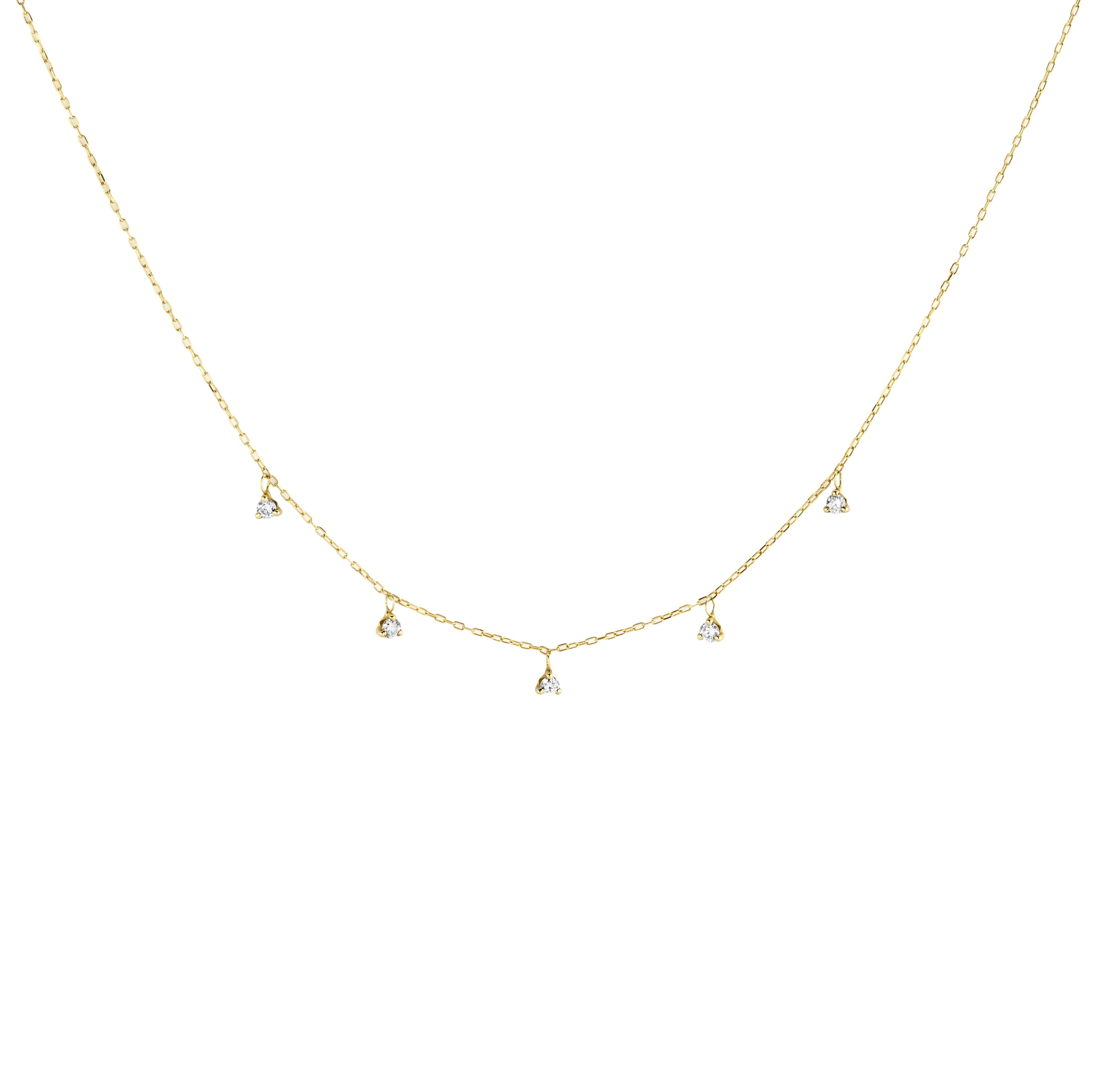 As lovely as raindrops glistening on your skin, our featherlight pulsar chain will give you an everlasting glow. Five dainty diamonds dangle on your collar bone as you embark on new adventures. Chain length 45cm with 0.30cts of round brilliant cut diamonds.