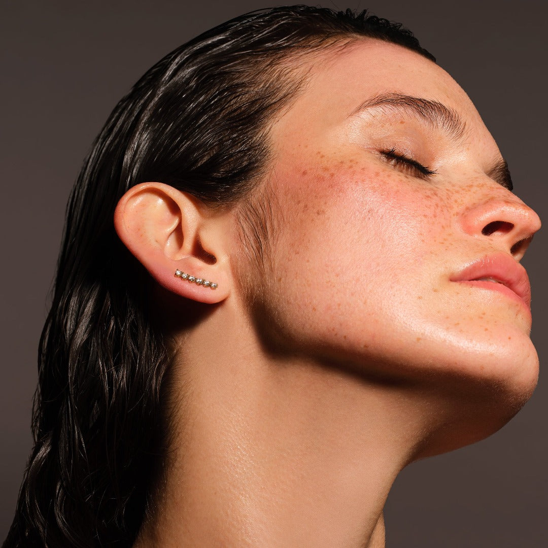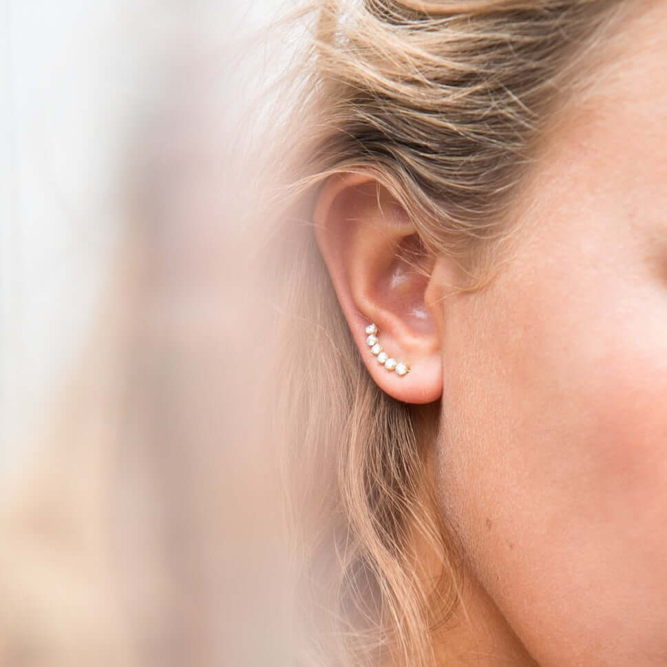 We are dedicated to ethical and sustainable production and use only 18k recycled solid gold and lab-grown diamonds of the highest color and clarity. The colourless diamonds we use are of EF color and VS clarity.